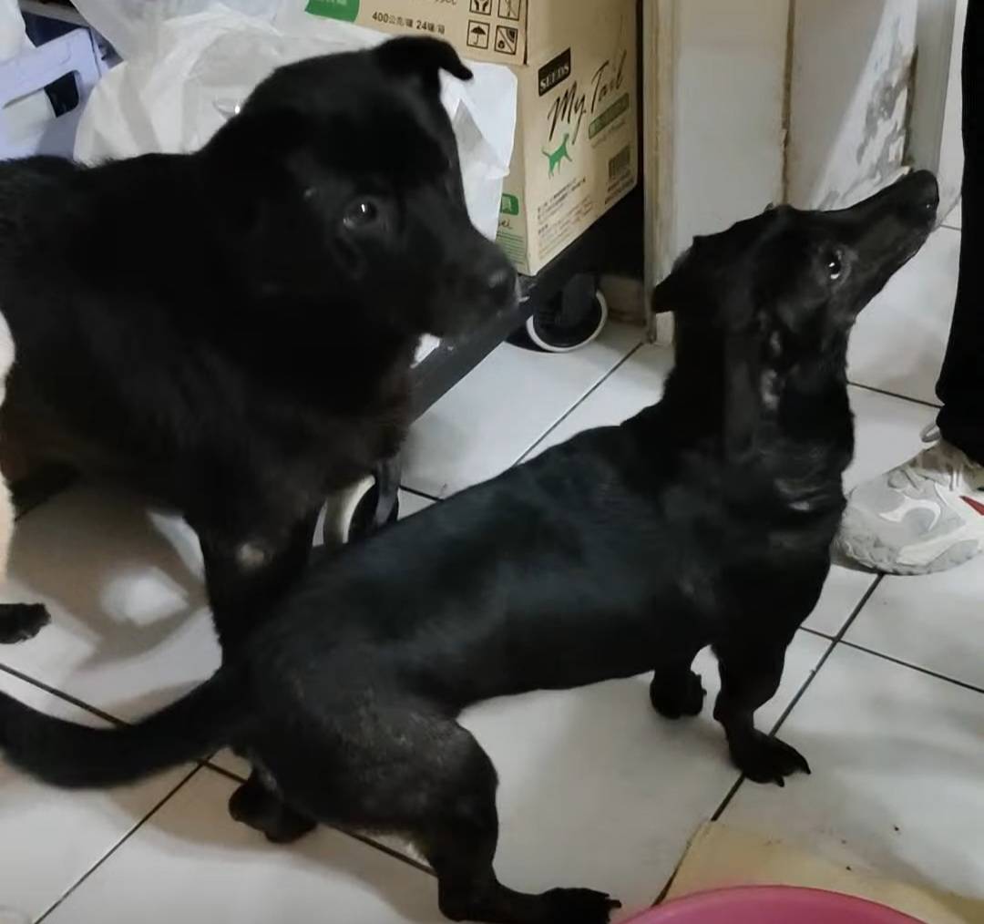 ✓ 黑黃短腿狗兒2隻,黃的叫「咪咪」,與柴犬1隻